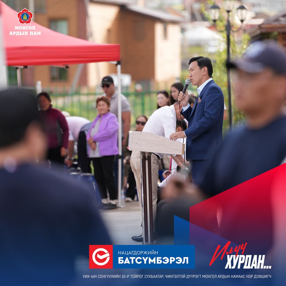 – Төсөв мөнгийг орон нутагт нь зөв хуваарилах ажлыг хурдан шуурхай зохион байгуулж Чингэлтэй дүүргийнхээ ажлыг нэр төртэй авч яваа Засаг дарга бол Н.Батсүмбэрэл. Н.Батсүмбэрэл олон нийтийн ажилд туршлагатай. Бид оюутан ахуй наснаасаа нөхөрлөж, оюутны болон залуучуудын байгууллагаас өнөөдрийг хүртэл мөр зэрэгцэж ажилласан. Ямар ч цаг хугацаанд манай Н.Батсүмбэрэл зарчмаасаа ухарч байгаагүй. Ажилдаа маш хариуцлагатай ханддаг. УИХ-ын сонгуулийн 10-р тойрогт нэр дэвшигчдийн уриа бол “Илүү хурдан”. Илүү Хурдан гэдэг урианд хамгийн тохирох нэр дэвшигч бол манай Н.Батсүмбэрэл. Би өмнө нь ч хэлж байсан. Манай Н.Батсүмбэрэл дарга шуурхай хүн гэж. Түүн шигээ ямар ч ажилд хурдан шуурхай шаламгай ажилладаг нь өнөөдөр дүүргийн ажлуудаас харагдаж байгаа юм.