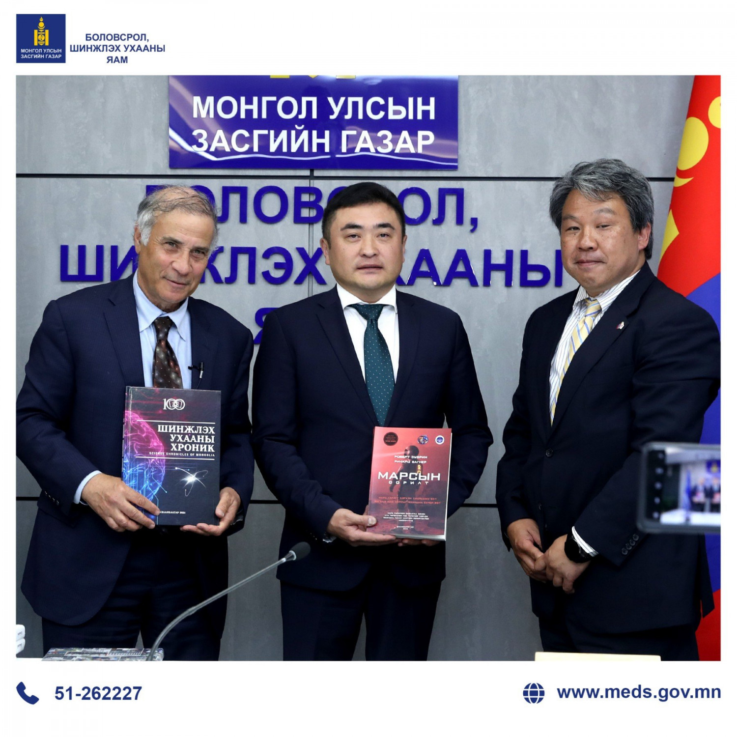 Боловсрол, шинжлэх ухааны дэд сайд Г.Ганбаяр өнөөдөр Марс нийгэмлэгийн төлөөллийг хүлээн авч уулзлаа. Уулзалтын эхэнд дэд сайд Марс нийгэмлэгийн үүсгэн байгуулагч, доктор Роберт Зубрины “Марсын сорилт” номыг Монголын хүүхэд, залуус эх хэлээрээ унших боломж олгосонд төслийн багийнханд талархал илэрхийлж, хүүхэд, залуусыг багаас нь шинжлэх ухаанд сонирхолтой болгоход уг төсөл ач холбогдолтой хэмээн онцлов.